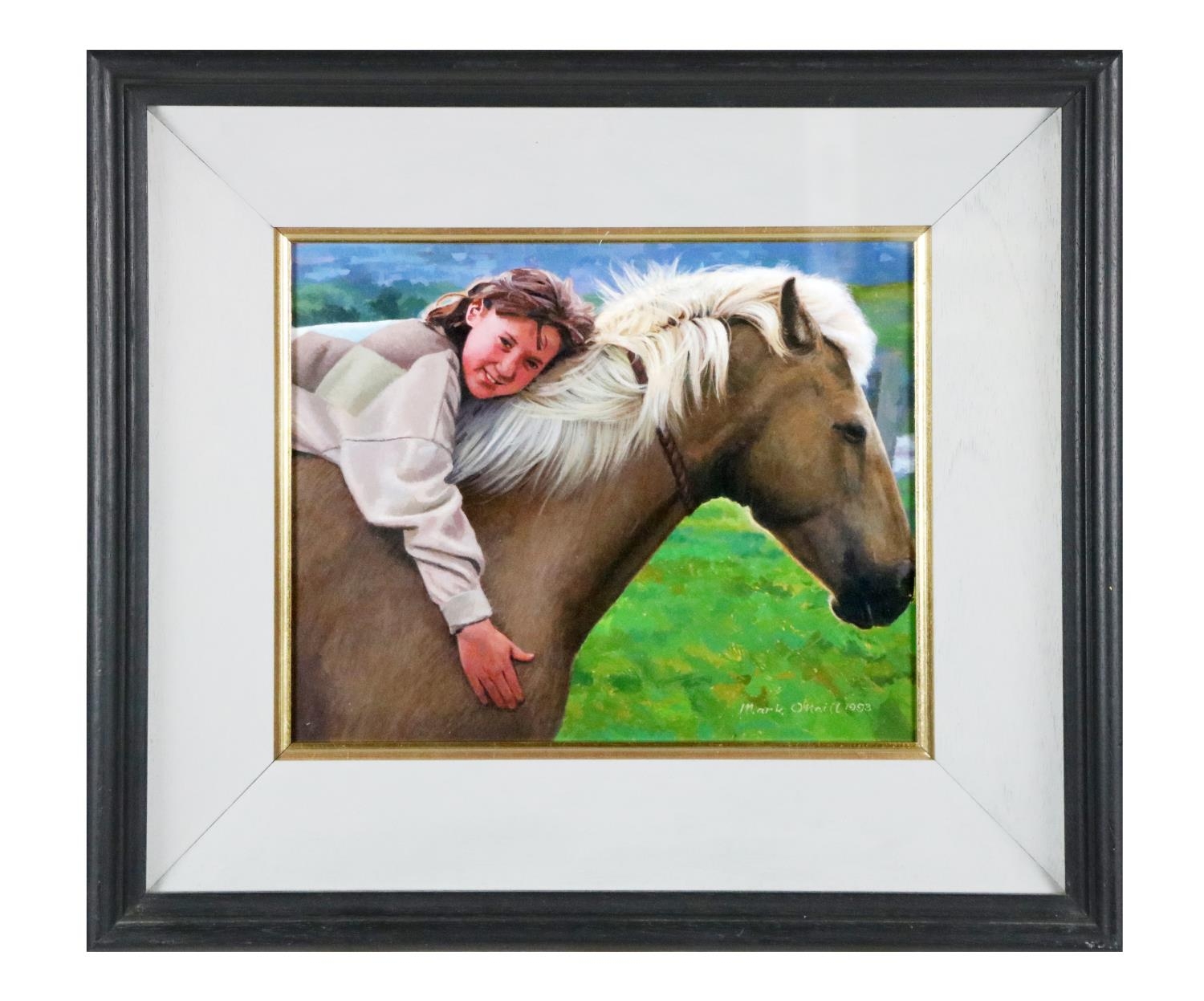 "Young Girl on a Pony," O.O.B., approx. 27cms x 32cms (10 1/2" x 12 1/2"), Signed and dated lower right 'Mark O'Neill, 1993', glazed and black frame. (1)