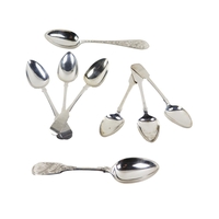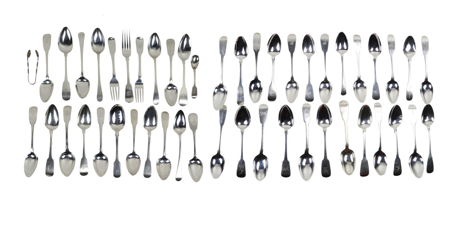 Silverware: A large collection of Irish & English silver crested, monogrammed Spoons, (some Forks) good marks, as a collection, approx. 37 ounces overall. (1)