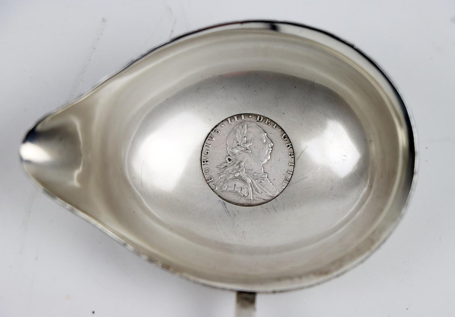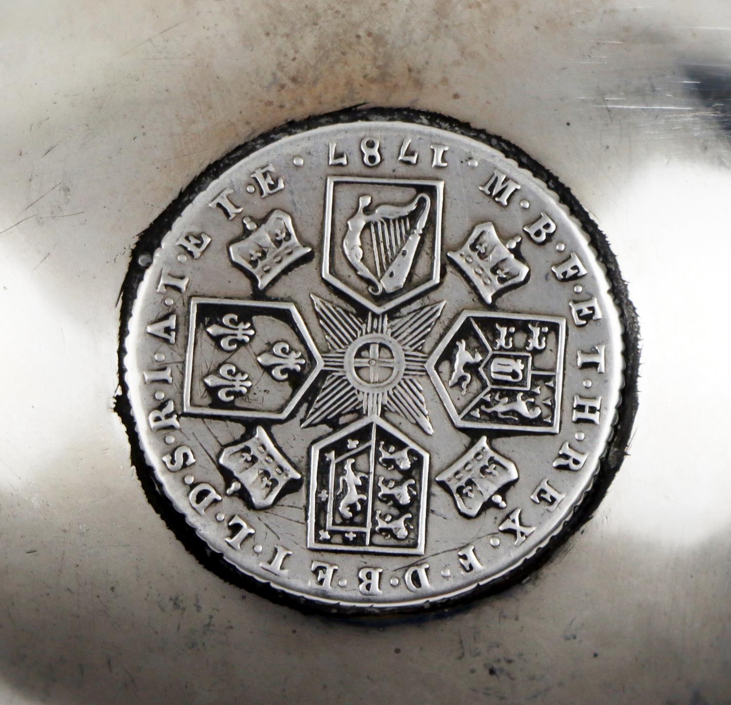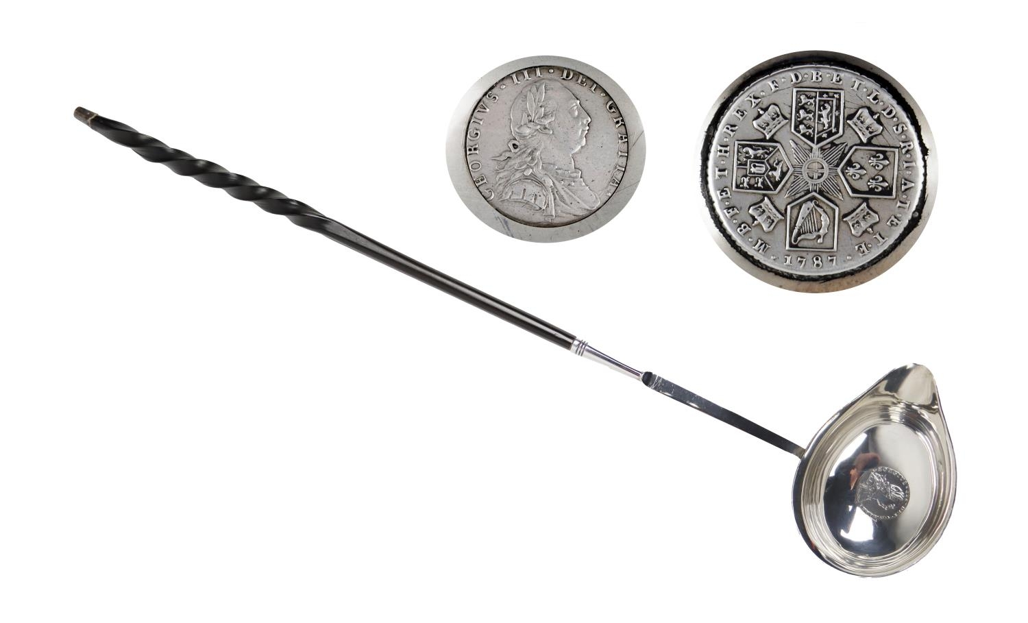 A silver and turned ebonised handle Brandy Ladle, with etched monogram and central George III coin. (1)