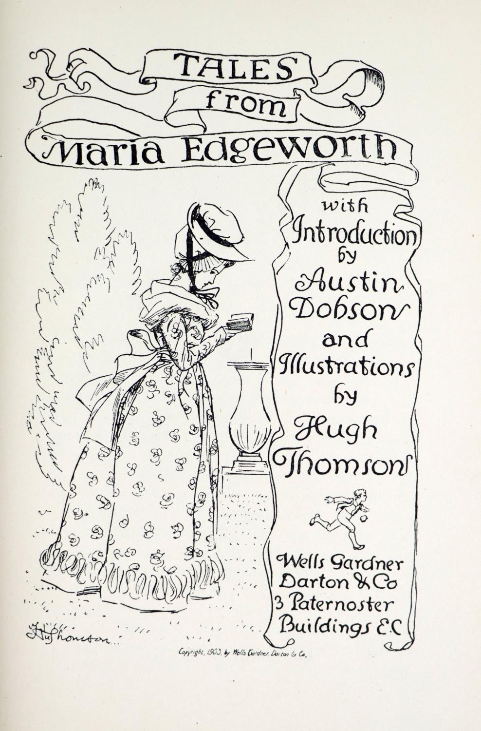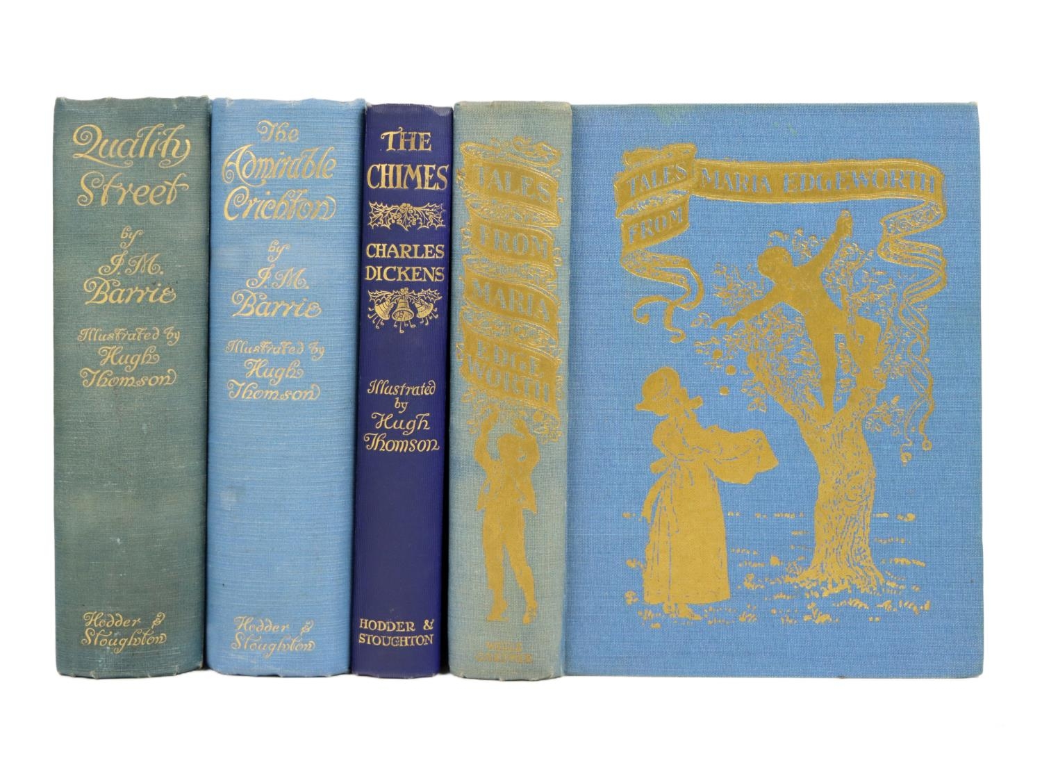 [Thompson (Hugh) Artist] Tales from Maria Edgeworth, 8vo Lond. n.d.; Barrie (J.M.) Quality Street, Lond. n.d. cold. frontis & mounted cold. plts. etc. thro.,-out; also The Admirable Crichton, 8vo Lond. n.d., cold. frontis & plts.; also Dickens (Chas.) The Chimes, L. n.d., cold. plts. All in fine orig. cloth, with attractive gilt decoration. V. good. (4)