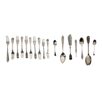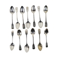 Silverware: A large collection of Irish Georgian and Victorian silver Teaspoons, with monogrammed lettering, by James le Bas, Philip Weekes, Richard Sawyer, John Pittar, John Smyth and others, as a collection, approx. 8.5 ounces. (1)
