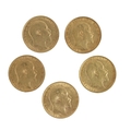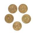 Gold Coins: A group of 5 King Edward VII full Sovereigns, to include 1903 (2), 1904, 1907, & 1910, as a collection, approx. 39.9gms. (5)