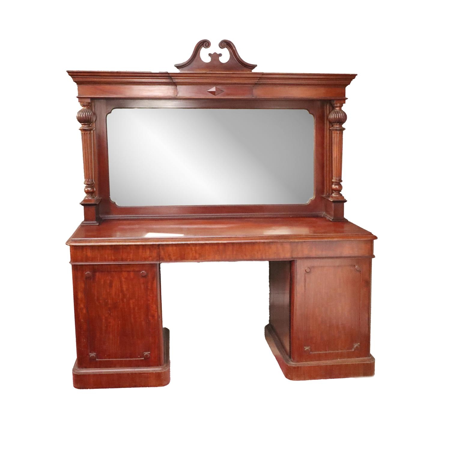 A fine quality mahogany mirror back Sideboard, with pillar uprights on pedestal base, approx. 183cms wide x 64cms deep x 213cms high (72" x 21" x 84"). (1)
