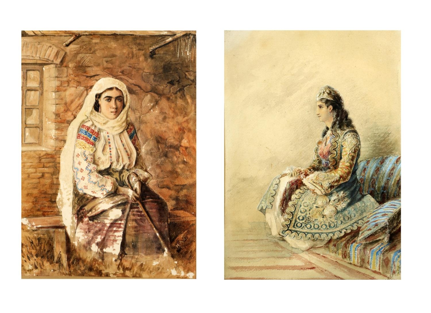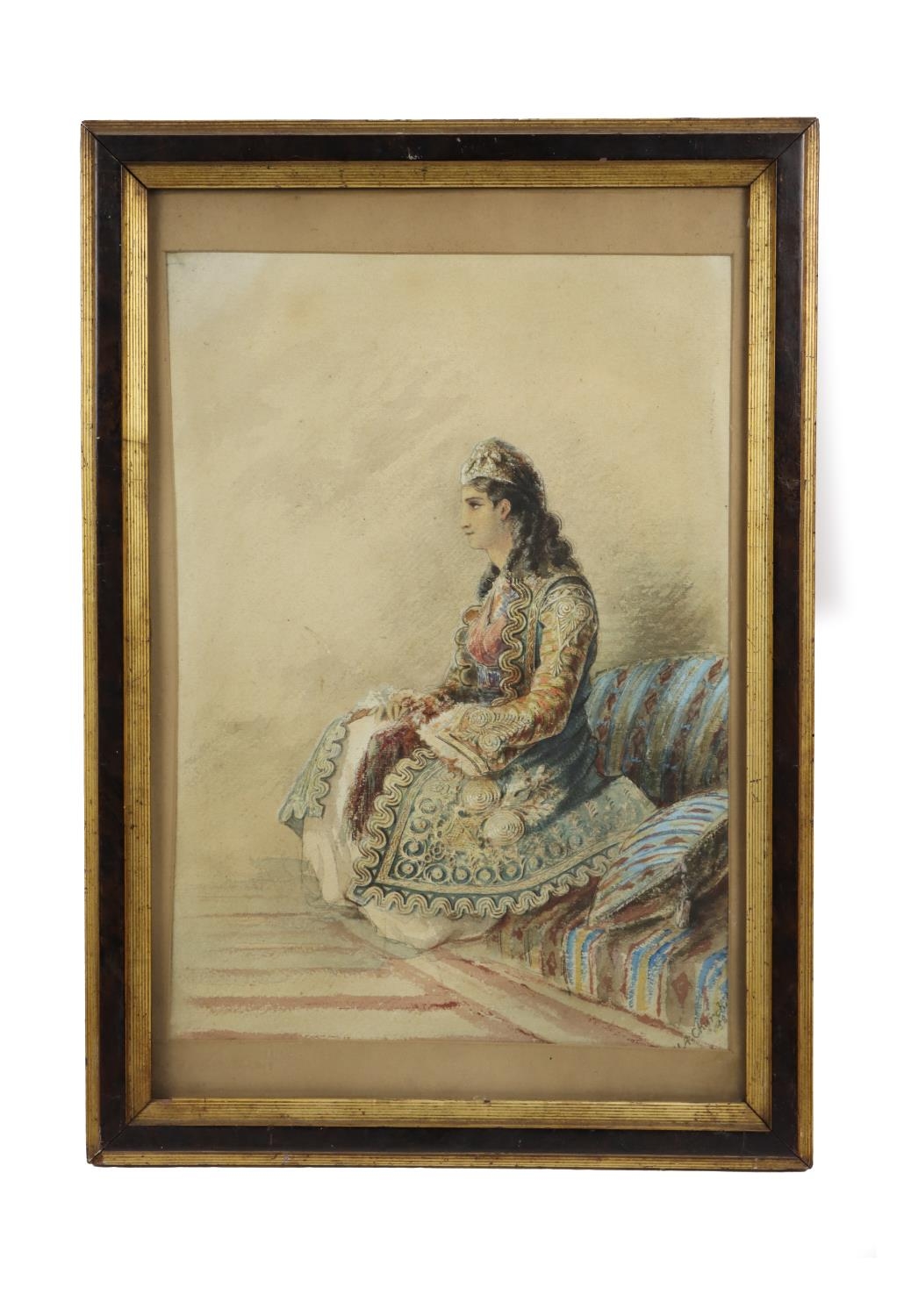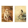 Watercolours: Two similar portraits, "Oriental Ladies in native dress," approx. 36cms x 25cms (14" x 9 3/4") and 42cms x 29cms (16 1/2" x 11 1/2"), both Signed, in original frames. (2)