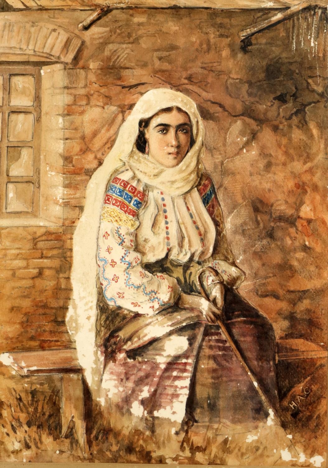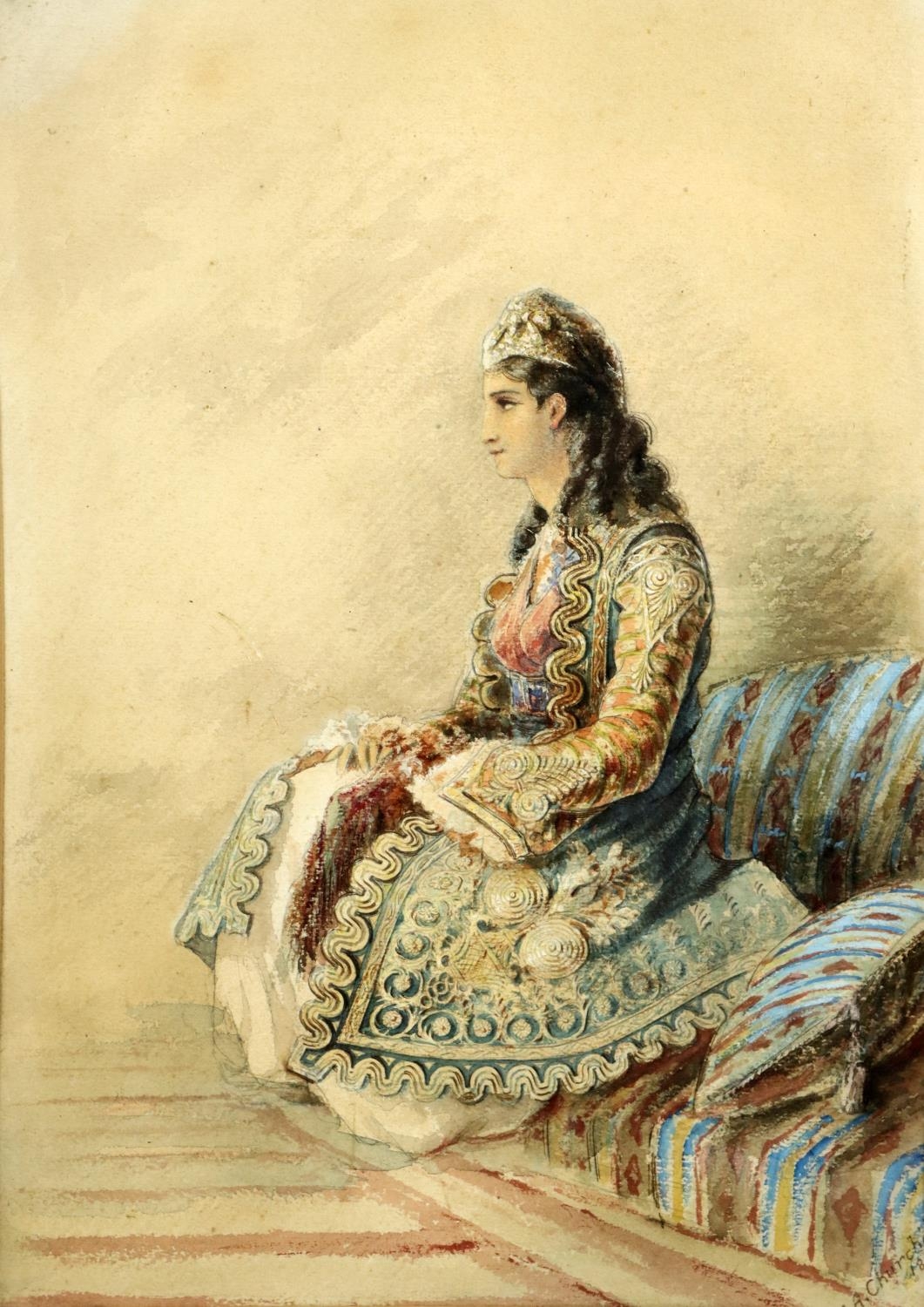 * Inscribed on reverse 'Given in 1863'. Also inscribed on contemporary label, 'Painted by Lady Churchill, given to my father in Constantinople in 1863'.