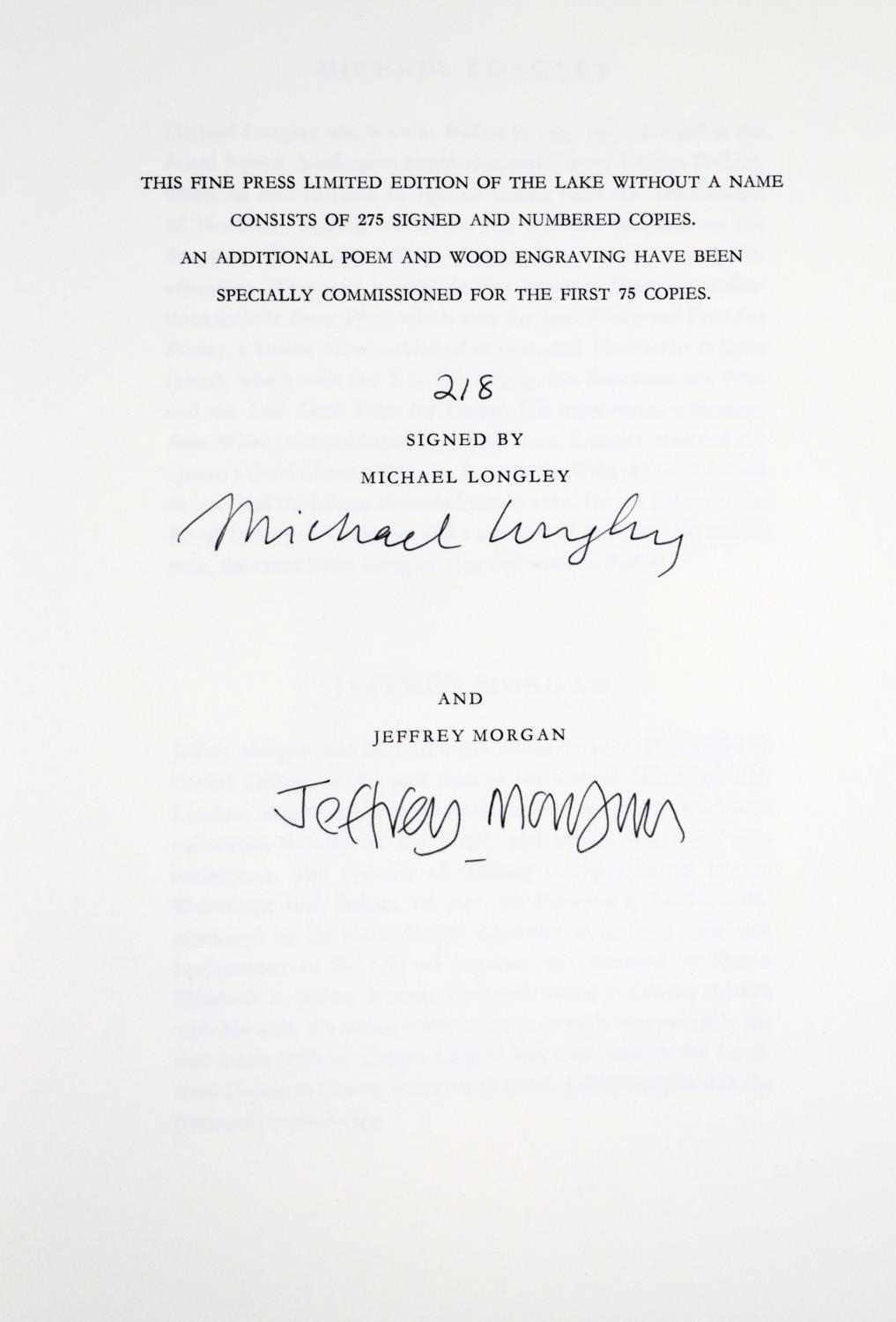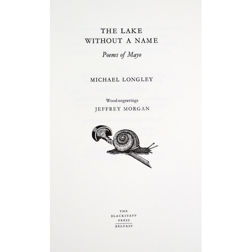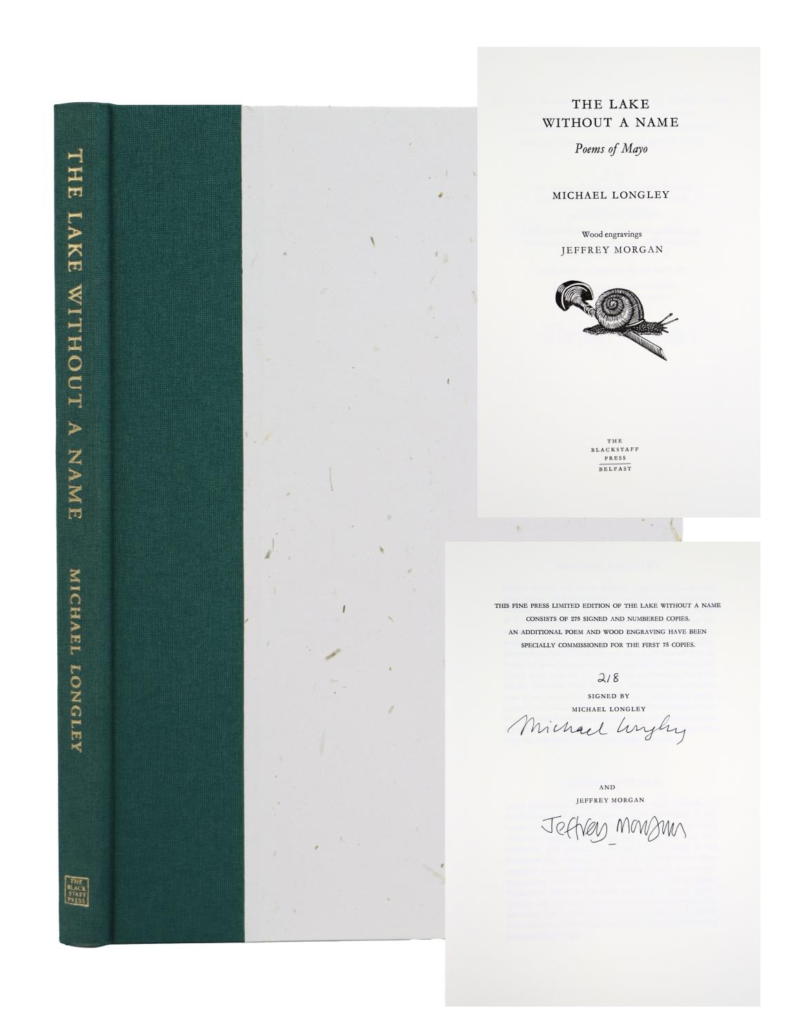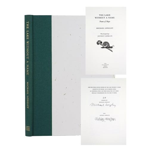Longley (Michael) & Moran (J.)illus. The Lake without a Name, Poems of Mayo, 8vo, Belfast (The Blackstaff Press) 2005, Signed & Limited 218/275 Copies, illus. green cloth backed hand made boards, matching slipcase. (1)
