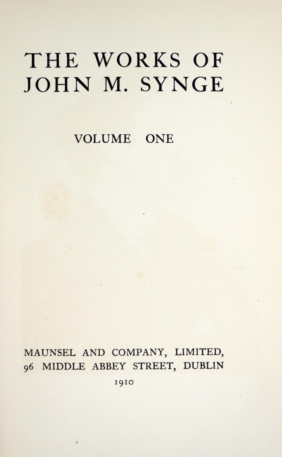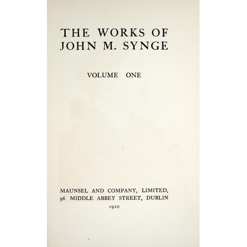 Synge (John M.) The Work of John M. Synge, 4 vols., D. (Maunsel & Co. Ltd.) 1910, portrait frontis, uncut, oatmeal cloth, git lettered spine. Good set. (4)