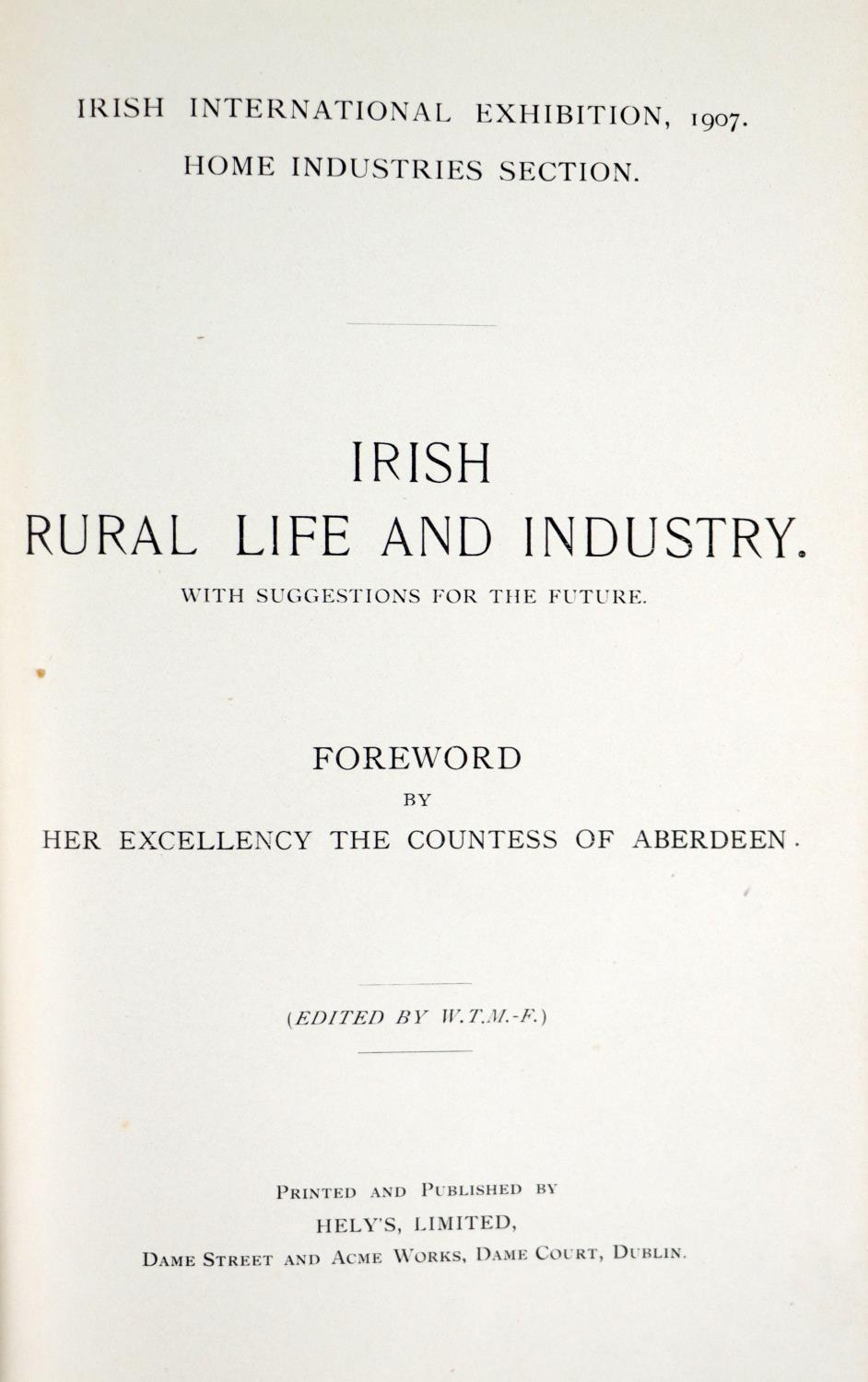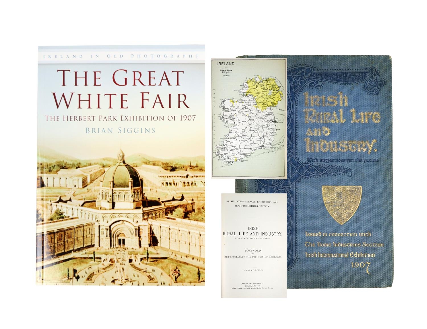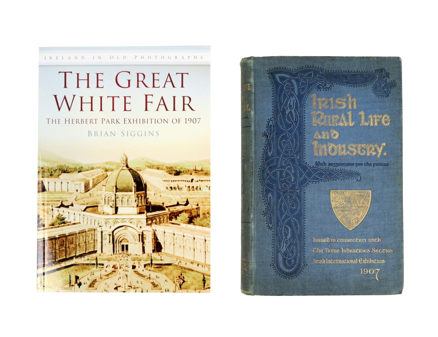 Aberdeen (Countess of,) Irish International Exhibition, 1907, Home Industries Section - Irish Rural Life and Industry, with Suggestions for the Future, 8vo, D. (Helys Limited) 1907, cold. frontis, illus., decorated blue cloth; Siggins (Brian) The Great White Fair - The Herbert Park Exhibition of 1907, 8vo, D. 2011, illus. & ptd. wrappers. Scarce. (2)