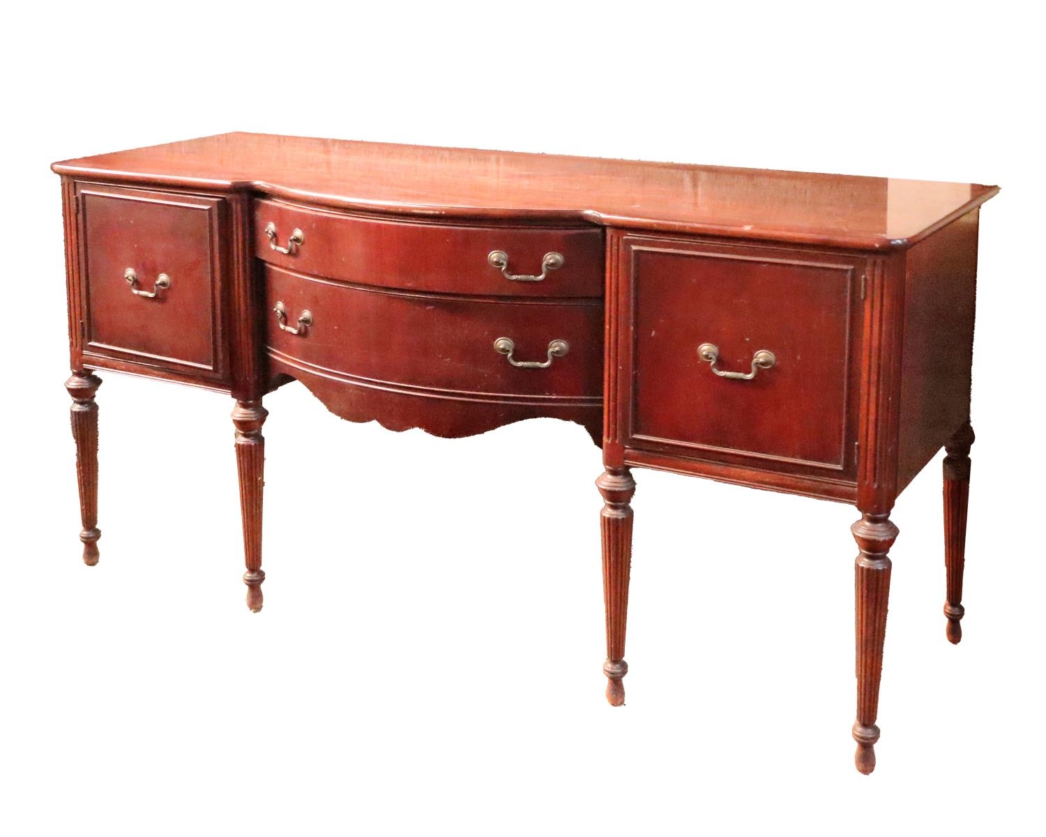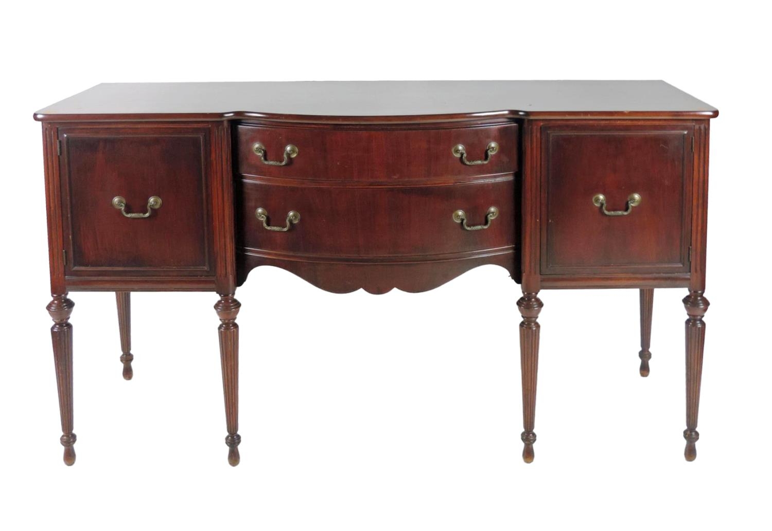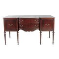 with plain top over low center with two drawers flanked by two presses on turned and reeded legs. (1)