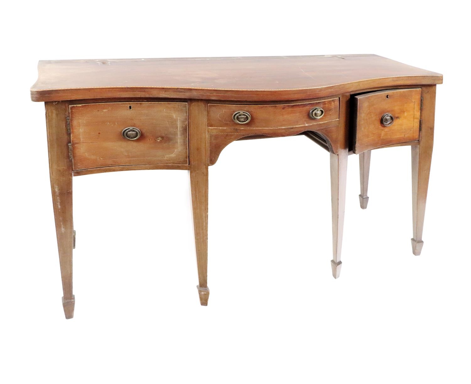 A 19th Century mahogany serpentine shaped Sideboard, the shaped top with herring bone inlay above central frieze drawer and two presses on square tapering legs, 122cms (48") wide. (1)