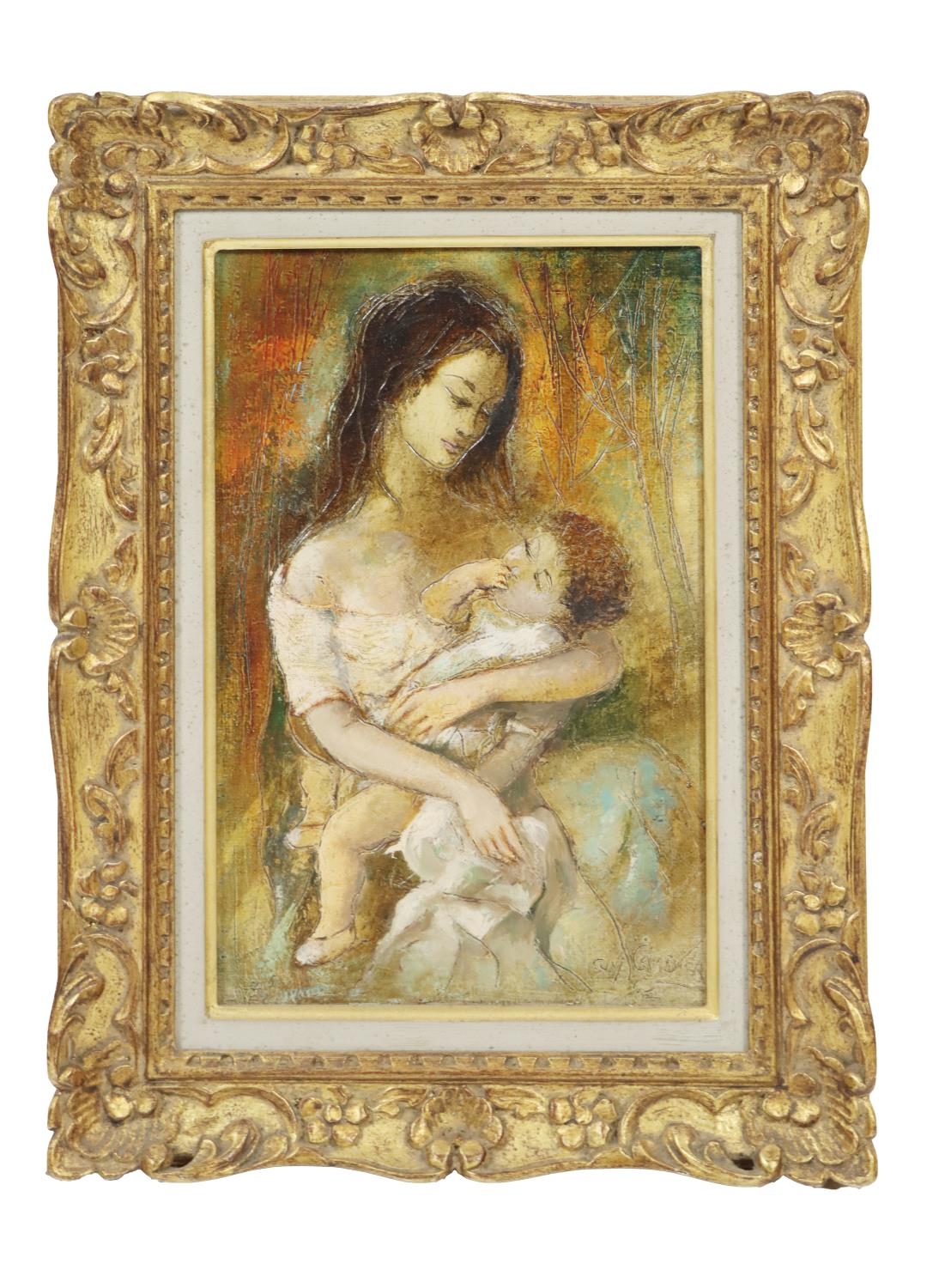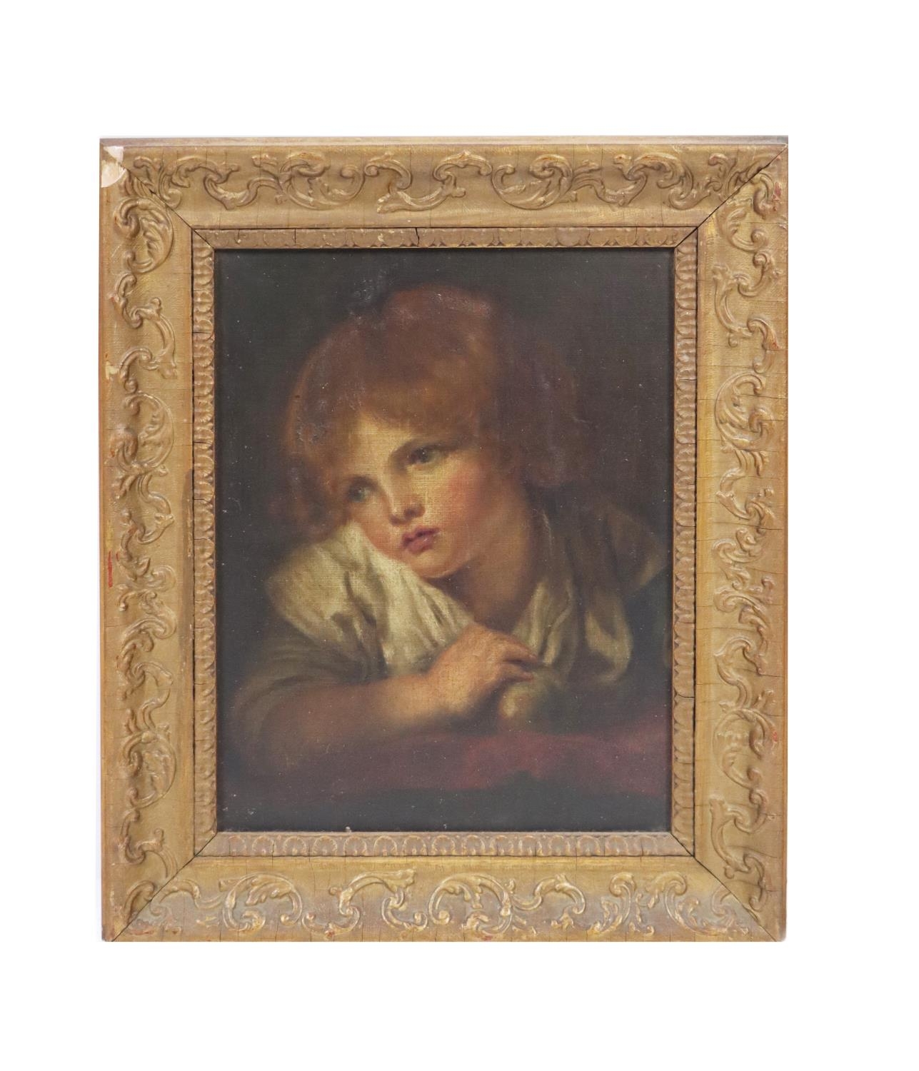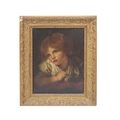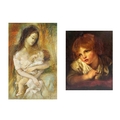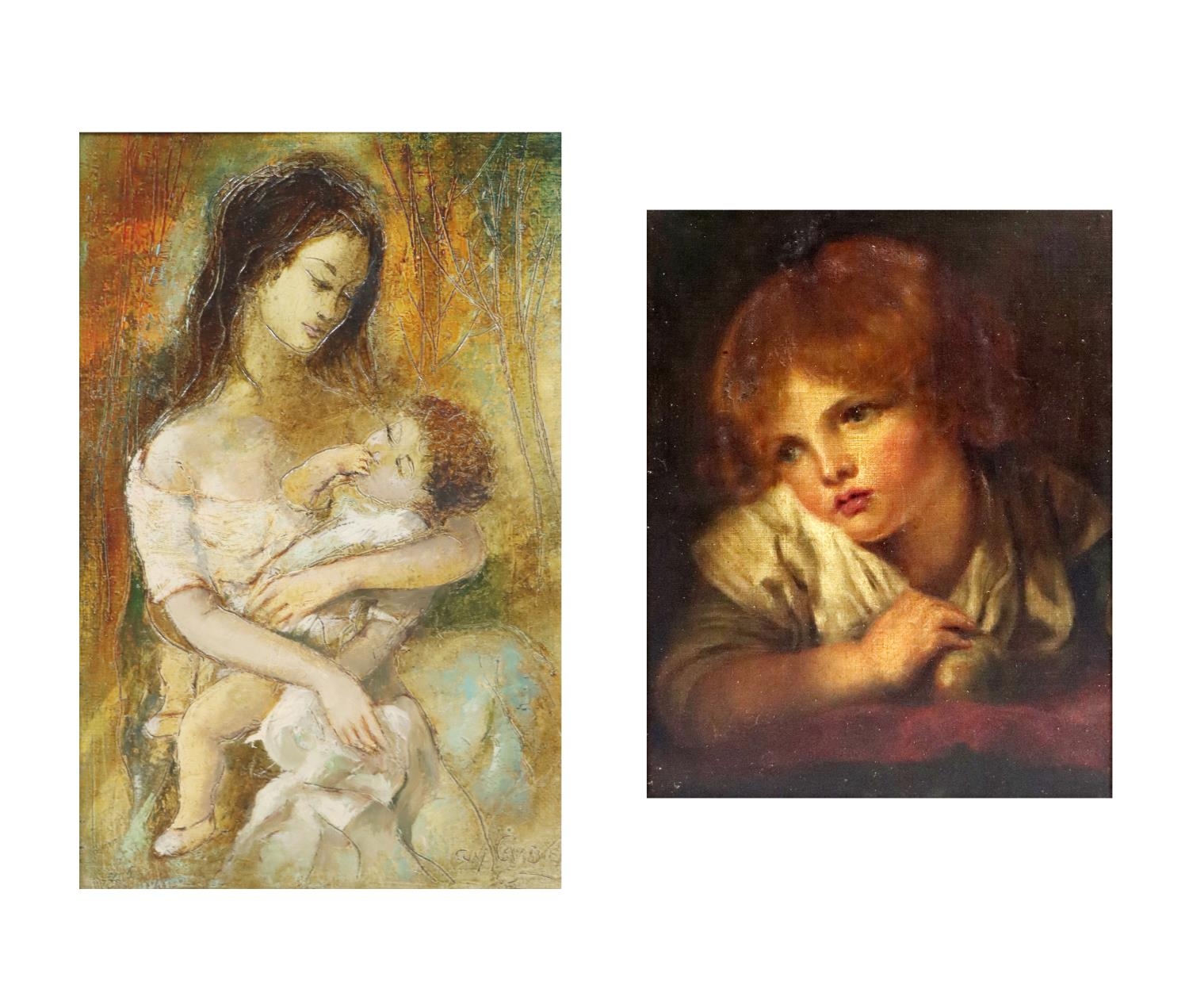 "Head and Shoulders of a Young Boy, leaning on a Table," a very attractive subject, O.O.C., 38cms x 28cms (15" x 11") in heavy gilt frame; and another "Mother and Child," in gilt frame. (2)
