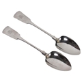 A pair of Irish silver Georgian period fiddle pattern Serving Spoons, by James Scott, Dublin, 1830, approx. 24cms (9 1/2"), each with engraved three mast ship, approx. 4 ounces. (2)