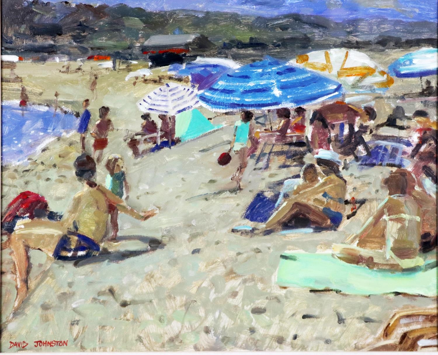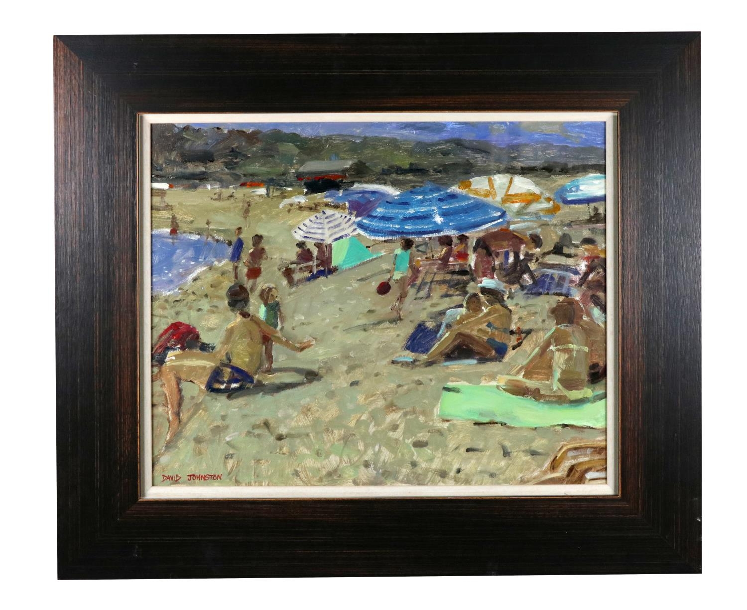 "Beach Scene" O.O.B., approx. 50cms x 50cms (19 1/2" x 19 1/2") Signed lower left, inscribed on reverse, wooden frame. (1)