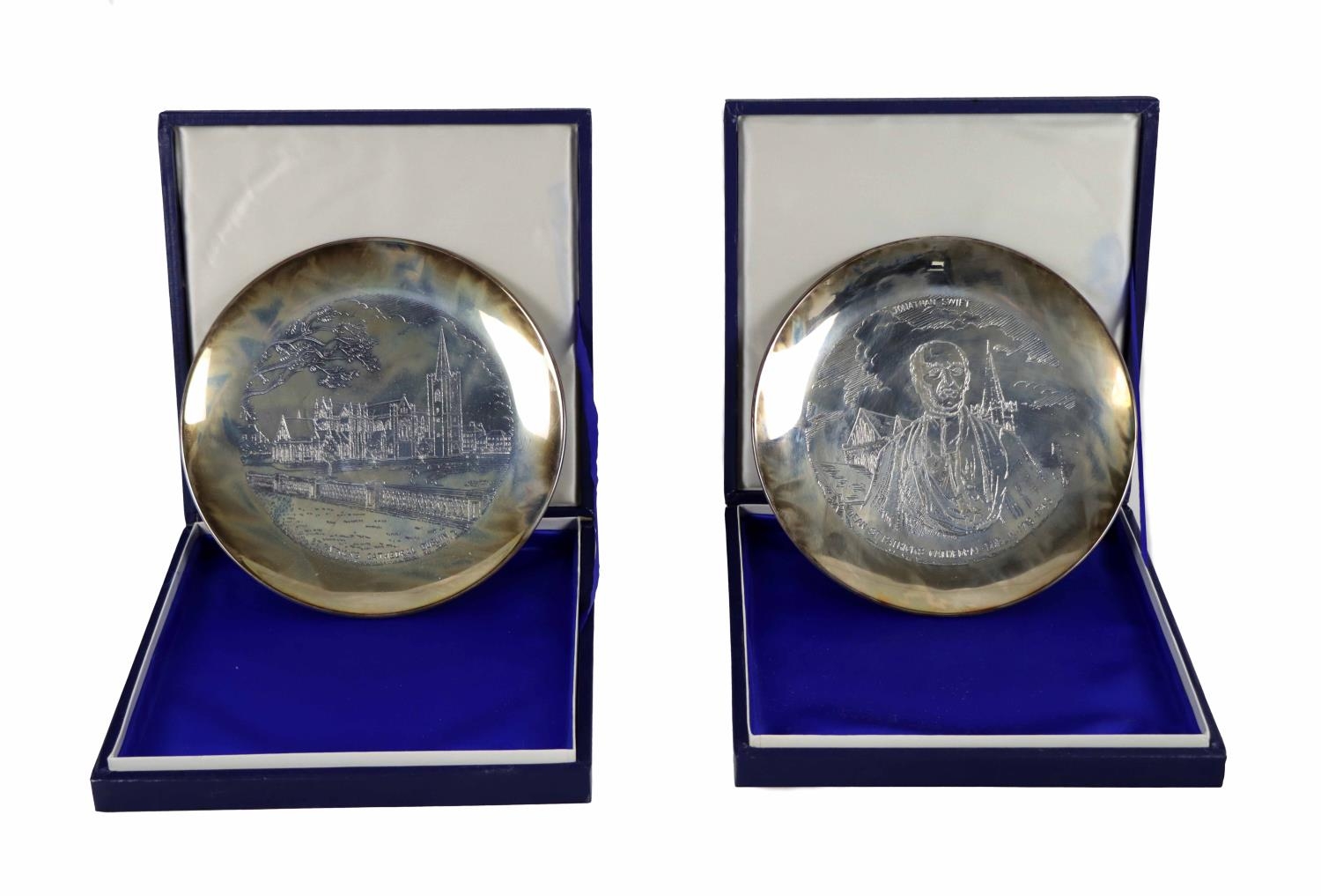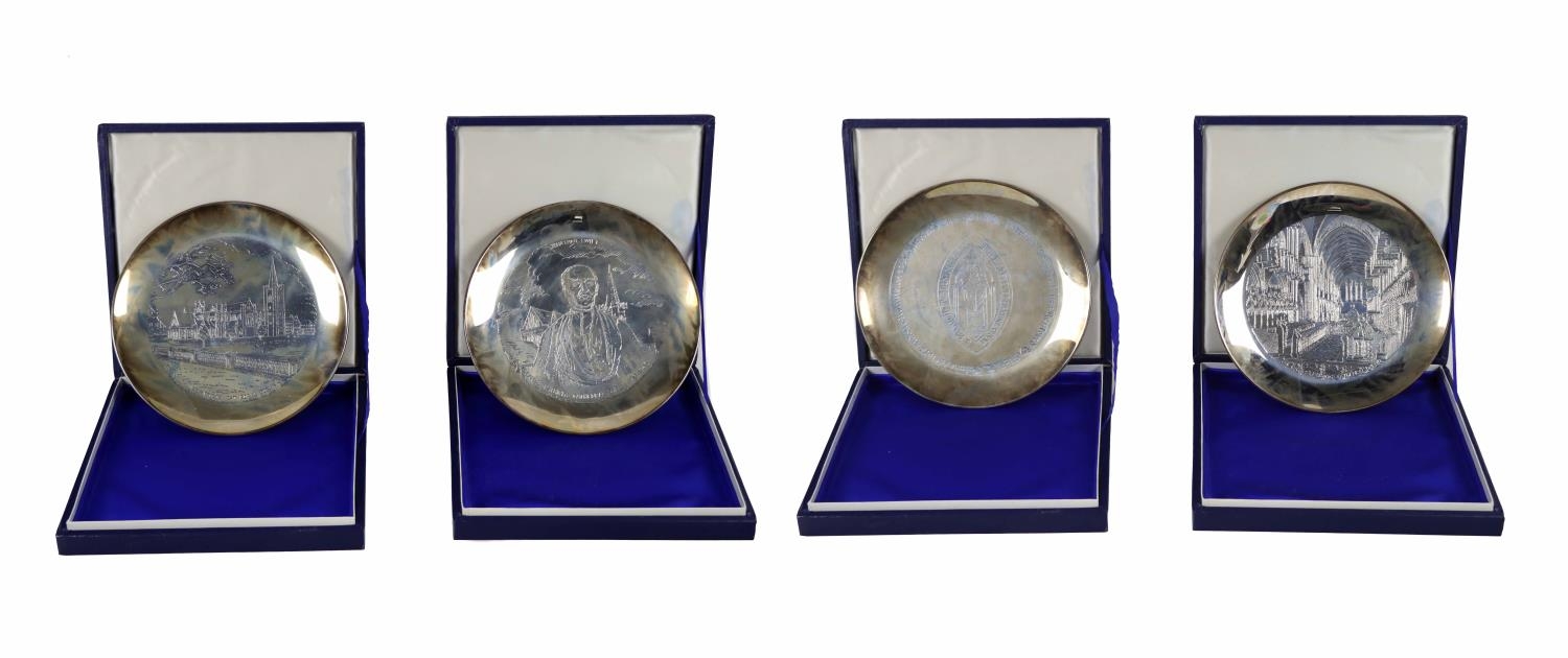 Silver: A set of 4 Royal Irish silver etched Commemorative Plates, to include: